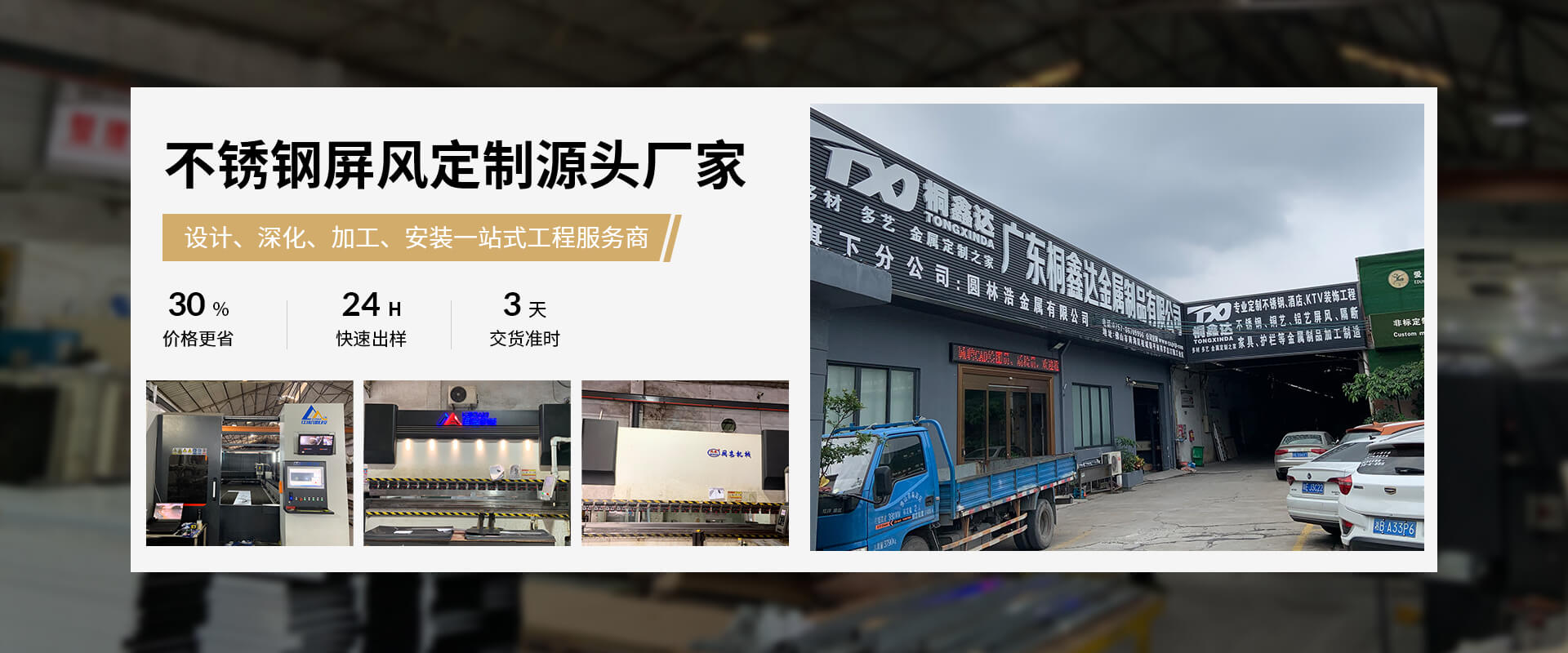 廣東桐鑫達金屬制品有限公司成立于2014年,是一家專注于高檔酒店/夜總會/高級場所金屬制品設計、生產及銷售安裝工程的企業(yè)。公司自成立以來,始終堅持以“質量求生存,誠信求發(fā)展”為宗旨,不斷滿足客戶對高端品質的需求,努力成為國內行業(yè)的佼佼者。